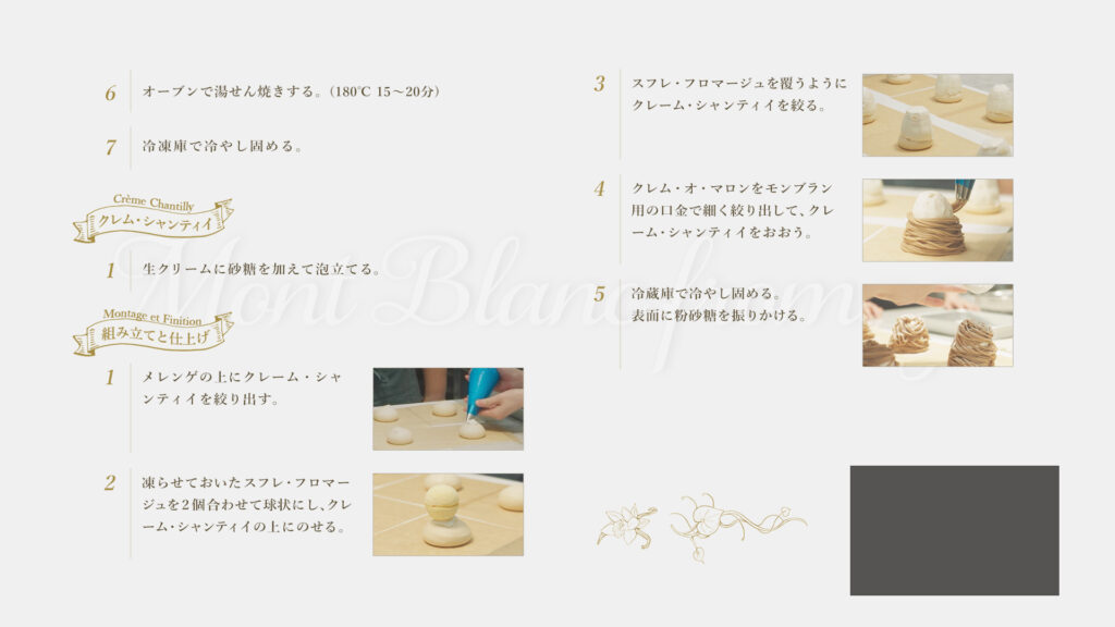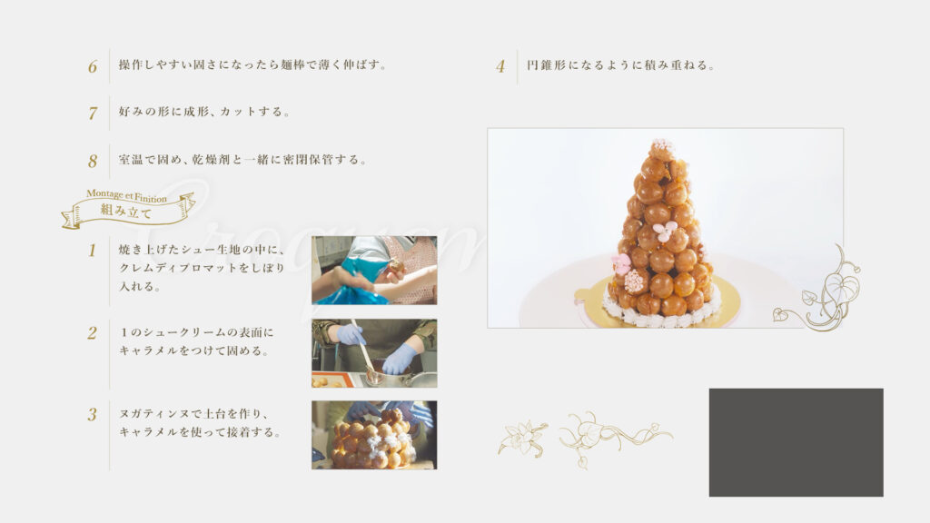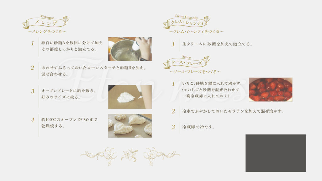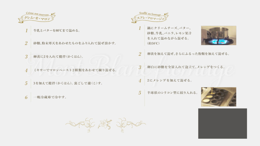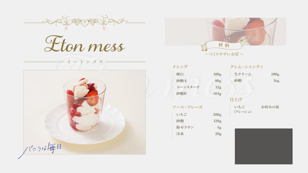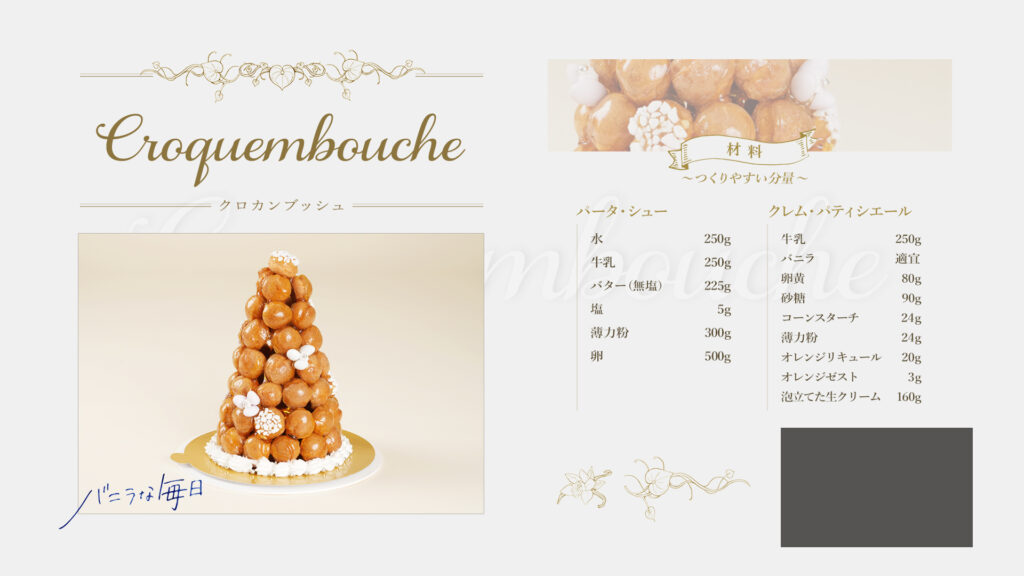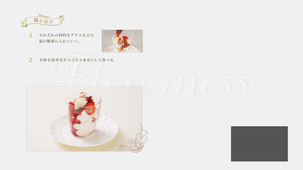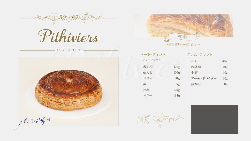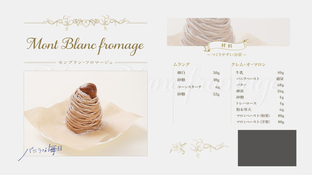 国内ドラマの「レシピ」を、Blu-rayメニューとして作成するデザイン制作です。クライアントの意向として、今回の商品はブルーレイ専用ケース仕様になり、お菓子レシピをブックレットとして作成したかったが、サイズが小さく、ブックレットにレシピを入れるのが厳しかったため、メニュー画面へ特典扱いとして静止画で入れたい。