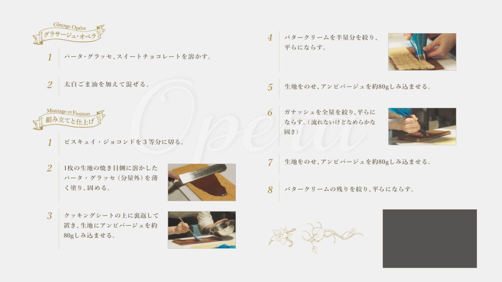 スイーツが人の心をつなぐ本作の世界観を、メニュー構成に反映。ナビゲーションはあくまで自然に、静かに、作品の雰囲気を壊さず、物語の延長として体験できるよう設計。まるで1ページずつめくるレシピブックのような感覚で操作が進むようにデザインした。